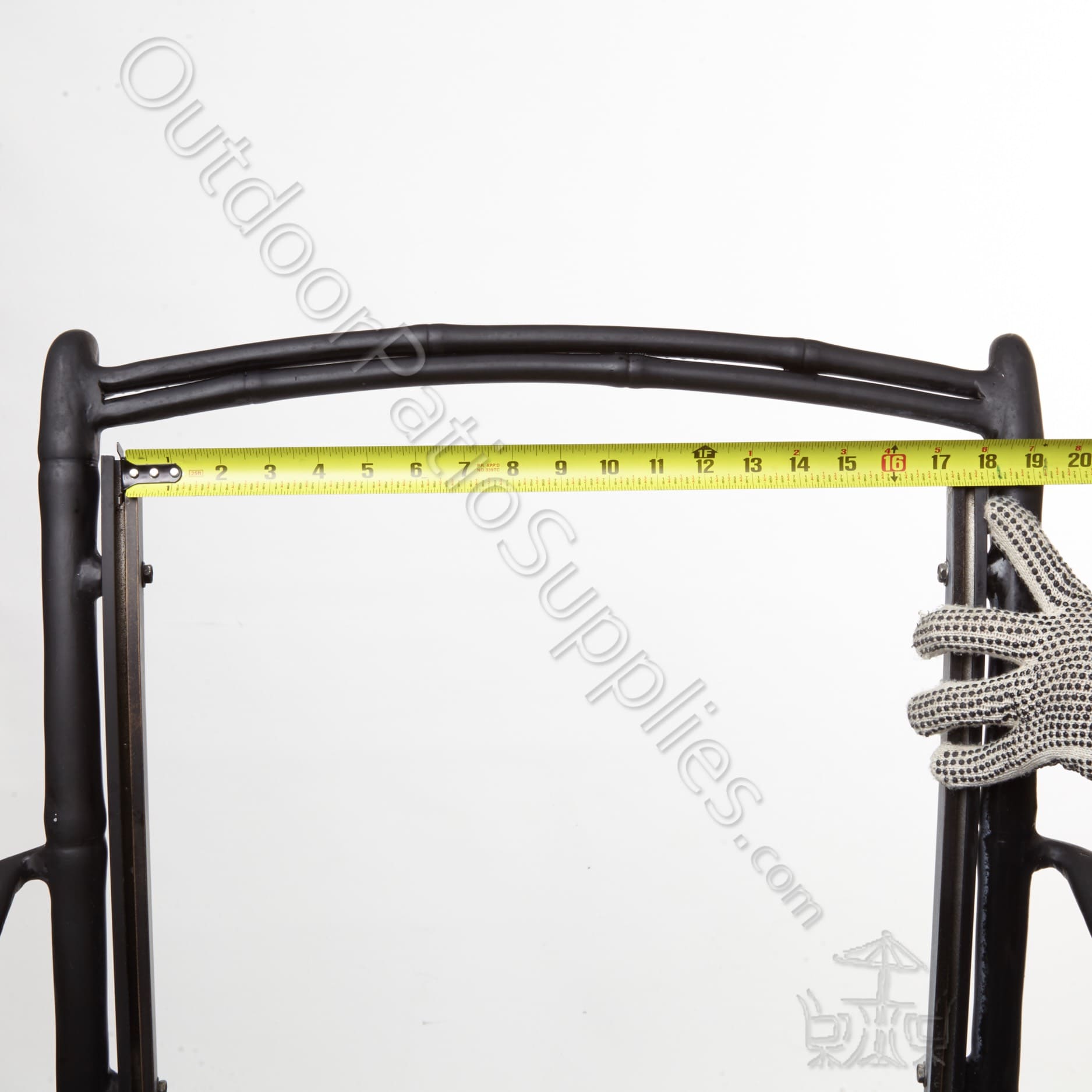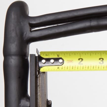 Position the tape measure at the back of the sling rail (excluding the end cap) and carefully follow the curve, if applicable, measuring all the way to the edge of the front rail. Important: Use the rail as your reference, not the sling fabric, as shown in